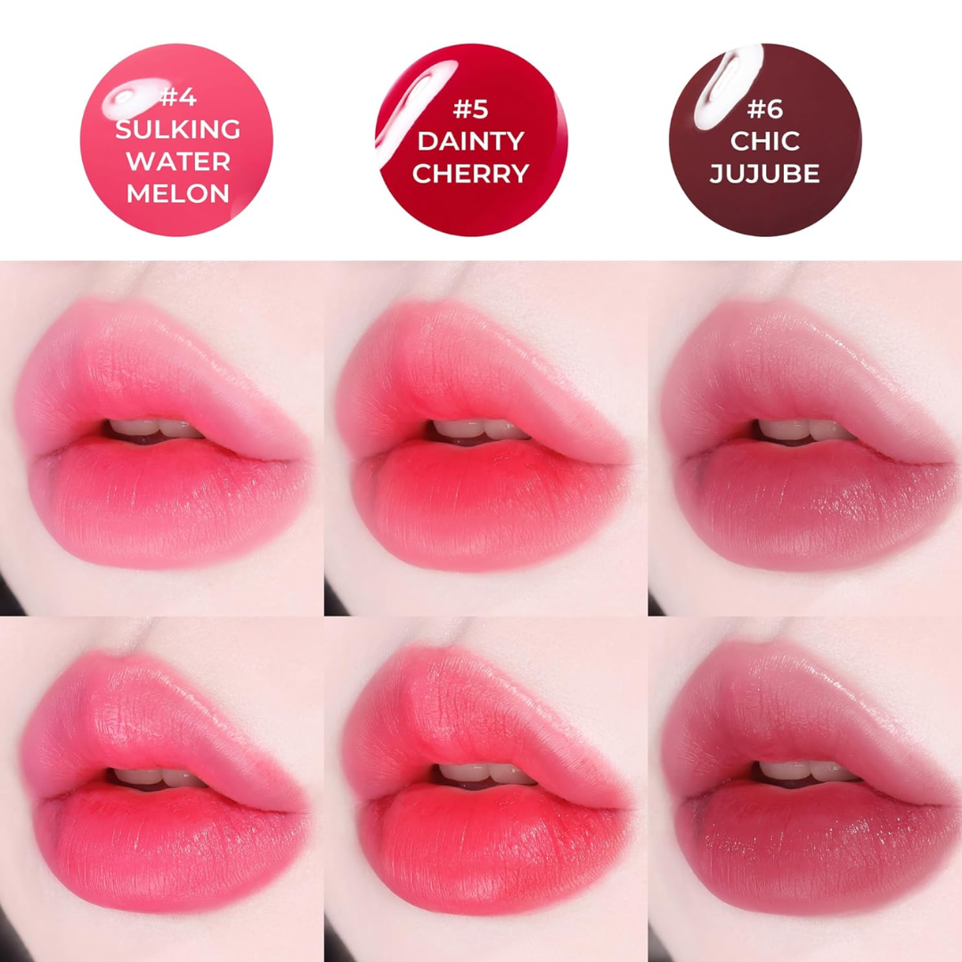 Този сияен тинт за устни придава свеж, плодов цвят и естествен блясък, който подчертава устните без да ги утежнява. Леката водна текстура се нанася изключително гладко, попива бързо и оставя комфортно усещане, без лепкавост. Оцветява устните нежно и равномерно, като създава ефект на „устни, целунати от плодов сок“.
