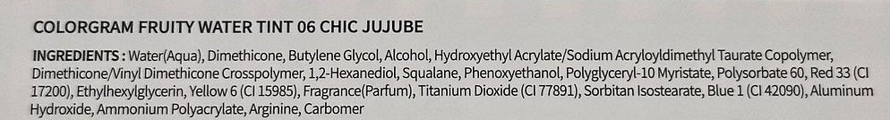 Този сияен тинт за устни придава свеж, плодов цвят и естествен блясък, който подчертава устните без да ги утежнява. Леката водна текстура се нанася изключително гладко, попива бързо и оставя комфортно усещане, без лепкавост. Оцветява устните нежно и равномерно, като създава ефект на „устни, целунати от плодов сок“.
