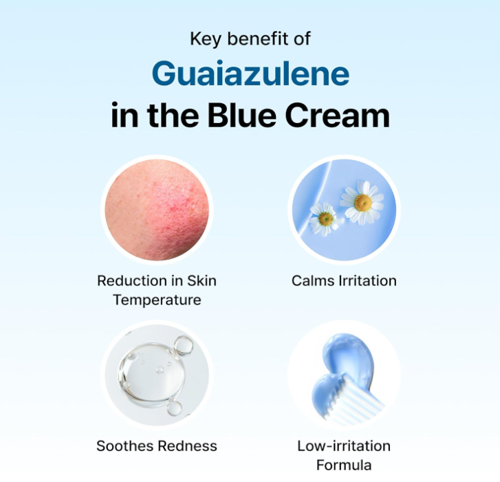 Главната съставка в този крем е Guaiazulene, мощен успокояващ кожата агент, извлечен от от лайка. Това придава на крема красив син цвят. Крема съдържа и центела, която хидратира кожата и облекчава дразненето и зачервяването. Крема съдържа и хиалуронова киселина, серамиди и пептиди.