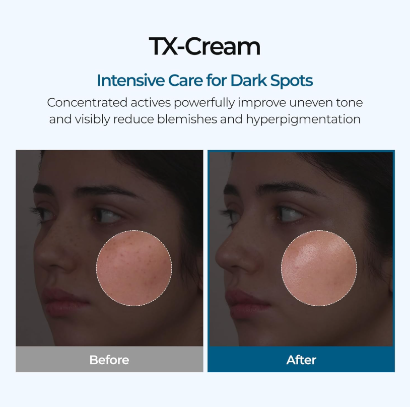 Транексамовата киселина (TXA) предлага няколко предимства в грижата за кожата, особено при лечението на хиперпигментация и мелазма. Освен това, TXA подобрява функцията на кожната бариера, подобрява задържането на влага и намалява постинфламаторната хиперпигментация след състояния като акне.