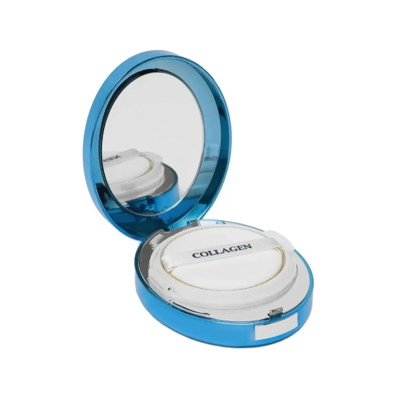 Накратко:Фон дьо тен къшън с добавен колаген, който съчетава грим и грижа за кожата. Формулата му е обогатена с хидролизиран колаген, който подпомага кожната еластичност, хидратация и видимо намалява появата на бръчки. Освен това съдържа ниацинамид и сквалан, които изравняват тена и помагат да се редуцира видимостта на порите. Фон дьо тенът дава естествено, леко сияйно покритие с „въздушна“ текстура, без да създава масков ефект върху кожата. Високата защита срещу слънчевите лъчи — SPF 50+/PA+++ — предпазва кожата от UVA и UVB, като така предпазва и от преждевременно стареене. Aqua Air технологията прави продукта удобен за всекидневна употреба и бързо нанасяне, подходящ за активен начин на живот. Той е подходящ за всеки тип кожа, включително кожа, нуждаеща се от хидратация или с първи признаци на стареене, както и за чувствителна кожа. Нанася се лесно — със спонжката в кутона, покрива и коригира неравности, пигментни петна и други малки несъвършенства. При системна употреба осигурява свеж, сияен и равномерен тен през целия ден.