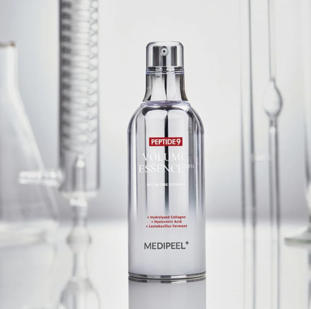 Есенция за лице с 9 пептиди, колаген и 100% френски VOLUFILINE е новата версия на MEDI-PEEL Peptide 9 Volume All In Essence е с два пъти по-голям процент от 9-пептидния комплекс за още по-ефективна борба с фините линии и дълбоките бръчки и повишаване на еластичността на кожата. Допълнителен колаген (7 вида колаген вместо 2).
