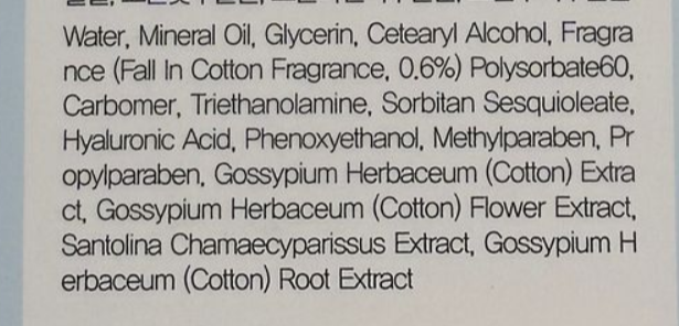 Кремът за ръце с екстракт от памук и хиалуронова киселина е формулиран да възстановява и защитава кожната бариера на ръцете. Екстрактите от памук – цветове, корени и семена – са богати на натурални минерали, които подхранват и поддържат оптималния хидробаланс на кожата. Хиалуроновата киселина осигурявайки дълготрайна хидратация и повишена еластичност. Минералното масло и глицеринът създават защитен филм, който предотвратява изсушаване и загуба на влага, без да утежняват текстурата. Добавеният екстракт от сив пелин (Santolina Chamaecyparissus) притежава антиоксидантни и успокояващи свойства, които спомагат за възстановяване на раздразнена кожа. Леката формула се абсорбира бързо, оставяйки кожата гладка и копринено мека. При редовна употреба кожата на ръцете става по-еластична, подхранена и видимо по-здрава.
