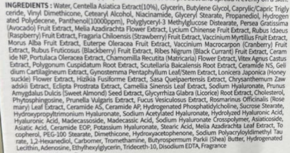 Крем за лице с 10% азиатска центела, 7 вида хиалуронова киселина, пантенол и 3 вида серамиди за интензивно възстановяване и успокояване на кожата. Подсилва кожната бариера, намалява зачервяването, хидратира в дълбочина и укрепва естествените защитни механизми на кожата.