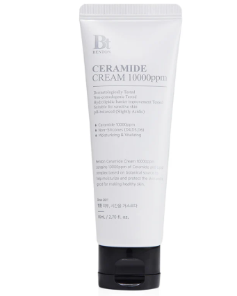Benton Ceramide Cream 10000ppm съдържа 10000ppm серамид и липиден комплекс, базиран на ботанически източник, за да помогне за овлажняване и защита на кожата и е добър за оздравяване на кожата. Подпомага консистенцията на влагата със съставки Trehalose и Panthenol и Cynanchum Atratum Extract, местна патентована съставка, помага за успокояване и управление на топлината върху кожата! Крема е с леко киселинно pH 5,5 и е подходящ за всички типове кожа.