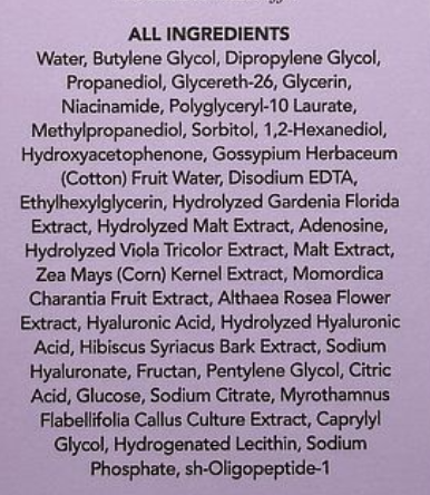Хиалуроновата киселина укрепва и подобрява еластичността на кожата, предотвратявайки ранната поява на бръчки. Попълва липсата на влага и се бори с дехидратацията на кожата. Осигурява на кожата мекота, незабавно хидратира и успокоява сухата и изморена кожа.