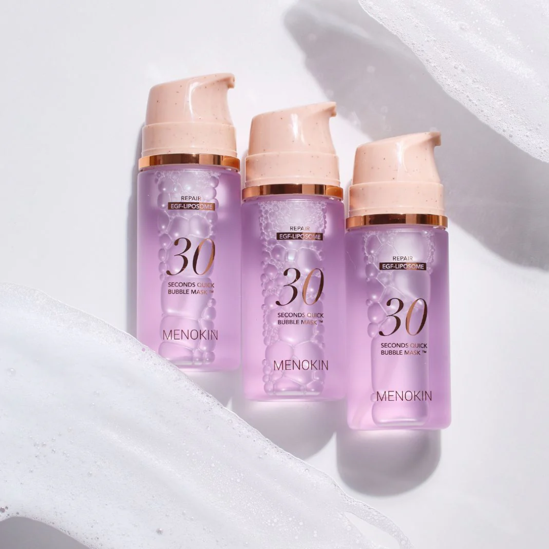 Маска серум за лице с 3 вида хиалуроннова киселина, ниацинамид, аденозин и АНА е иновативна безотмивна маска за лице, създадена да осигури интензивно възстановяване и регенерация на кожата само за 30 секунди. Формулата използва усъвършенствана технология с микро-мехурчета, които подпомагат бързото и дълбоко доставяне на активните съставки в кожата, без необходимост от отмиване. Маската е разработена с фокус върху укрепването на кожната бариера и възстановяването на увредена или стресирана кожа. Ключов елемент във формулата са EGF липозомите, които подпомагат клетъчното обновяване и стимулират естествените процеси на регенерация. Те работят в синергия с активни съставки, насочени към подобряване на еластичността и цялостната структура на кожата. Добавеният аденозин спомага за изглаждане на фините линии и подобряване на текстурата, като кожата изглежда по-гладка и по-стегната. Микро-мехурчетата се активират при нанасяне и освобождават концентрирани активи, които проникват ефективно в епидермиса и подпомагат интензивната хидратация. Формулата осигурява незабавно усещане за комфорт, свежест и възстановяване, като кожата изглежда по-спокойна и балансирана още след първата употреба. Благодарение на нежния си състав, маската е подходяща за всички типове кожа, включително чувствителна. Menokin 30 Seconds Quick Bubble Mask Repair е идеално решение за бърза, но ефективна грижа в натовареното ежедневие, като съчетава действието на маска и серум в една стъпка. Употребата е лесна и удобна – нанасят се 2–3 помпи, разнася се с лек масаж до пълно абсорбиране и не се изисква изплакване. При редовна употреба кожата става по-хидратирана, по-еластична и видимо по-здрава, с подобрена бариерна функция и по-равна текстура.