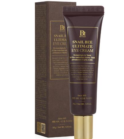 Benton's Snail Bee Ultimate Eye Cream e мултифункционален околоочен крем с ферментен филтрат от охлювена слуз, пептиди, хиалуронова киселина и пчелна отрова. Околоочният крем помага за изглаждане и ревитализиране на зоната около очите.