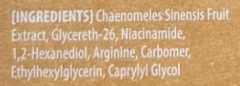 Съдържа 2% ниацинамид за изсветляване на кожата и регулира производството на себум за балансирана кожа. Обогатен с 93% екстракт от плодове на Chaenomeles Sinensis, който е богат на витамин С и флавоноиди за гладка и сияйна кожа.