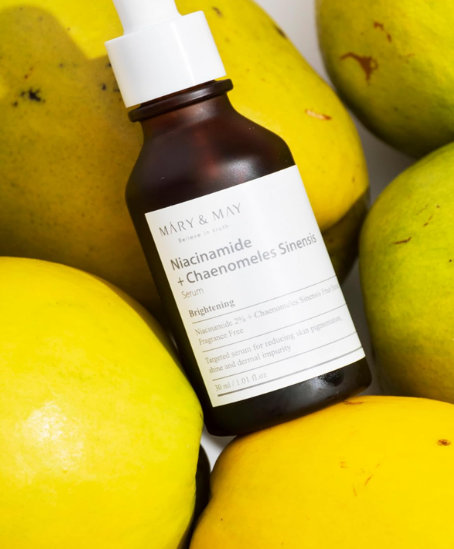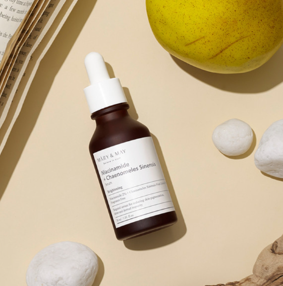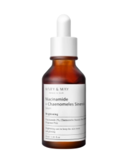 Серумът Mary & May Niacinamide + Chaenomeles Sinensis съдържа 2% ниацинамид и 93% екстракт от плодове на Chaenomeles Sinensis. Серумът обещава да изсветли кожата и регулира производството на себум, в допълнение към другите предимства на ниацинамида, като подобряване неравномерния тен на кожата, омекотяване, помага в борбата с фините линии и бръчки, стягане порите.