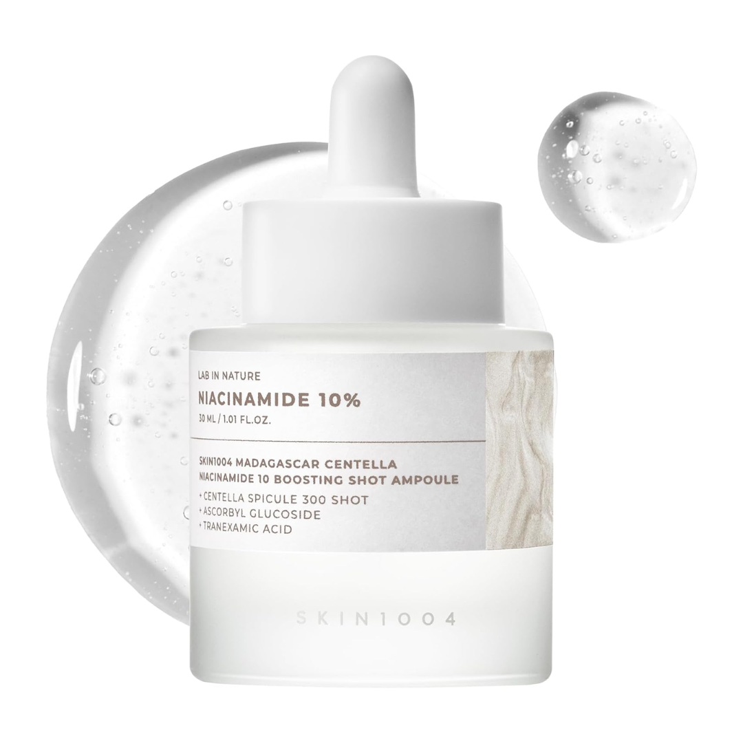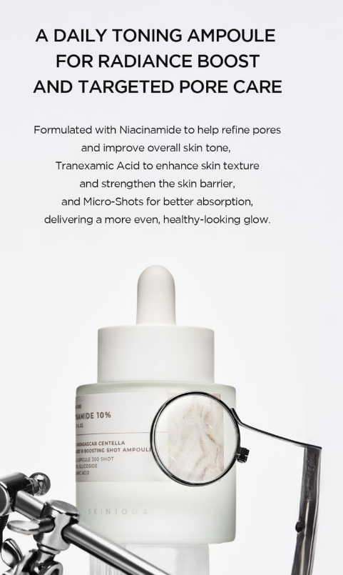 Ампула бустер за лице с 10% ниацинамид, транексамова киселина, спикули и азиатска центела е високоефективен продукт, създаден като целенасочено решение за грижа за кожата с разширени пори, неравномерен тен и липса на сияние. Формулата съдържа 10% ниацинамид, мощна концентрация на витамин B3, която подпомага видимото подобряване на текстурата на кожата, балансирането на себума и изравняването на тена. Ампулата използва Boosting Shot технология със спикули (hydrolyzed sponge), които създават микроскопични канали на повърхността на кожата, за да подобрят проникването и усвояването на активните съставки. Ключова съставка във формулата е екстрактът от Madagascar Centella Asiatica, който има успокояващо и балансиращо действие и подпомага комфорта на кожата по време на активна грижа. Продуктът съдържа и транексамова киселина, която допринася за по-равномерен тен и подобрен естествен блясък на кожата. Съдържанието на пантенол в ампулата подпомага хидратацията и поддържането на кожната бариера, като намалява усещането за сухота и дискомфорт. Формулата е разработена така, че да бъде подходяща за различни типове кожа, включително комбинирана и мазна, особено при наличие на неравен тен, разширени пори или уморен външен вид. При редовна употреба продуктът спомага за по-гладка кожа, по-чист и равномерен тен и подобрено визуално сияние. Комбинацията от висока концентрация ниацинамид, усъвършенствана boosting технология и успокояващи активи превръща тази ампула в интензивна, но балансирана грижа за кожа, която търси видимо усъвършенстване на текстурата и тонуса.