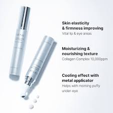Околоочен крем за лице с 5 вида пептиди, колаген и сквалан, ревитализираща процедура за очи, която стяга, хидратира и озарява деликатната кожа около очите. Съдържа 10 000 ppm растителен колагенов комплекс, пептиди и ниацинамид, този усъвършенстван околоочен крем е насочен към борбата с фините линии, бръчките и подпухналостта за по-гладка и стегната кожа.