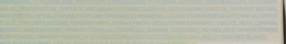 Балсам за устни с блясък , създаден да осигури интензивна хидратация и подхранване на устните. Формулата е обогатена с масла от маслина и слънчоглед, които подпомагат задържането на влагата и оставят устните меки, гладки и защитени от изсушаване. Леката, сиропообразна текстура се разтапя при контакт с устните и придава естествен блясък с „glass-like“ ефект. Балсамът съдържа фино смлени частици диамантен, рубинен и сапфирен прах, които допринасят за деликатен блясък и визуално по-плътни устни. Осигурява леко оцветяване в коралов нюанс, което придава свеж и жизнен вид без усещане за тежест. Формулата е веган, дерматологично тествана и подходяща за чувствителни устни, като може да се използва ежедневно за поддържане на хидратацията и комфорта.